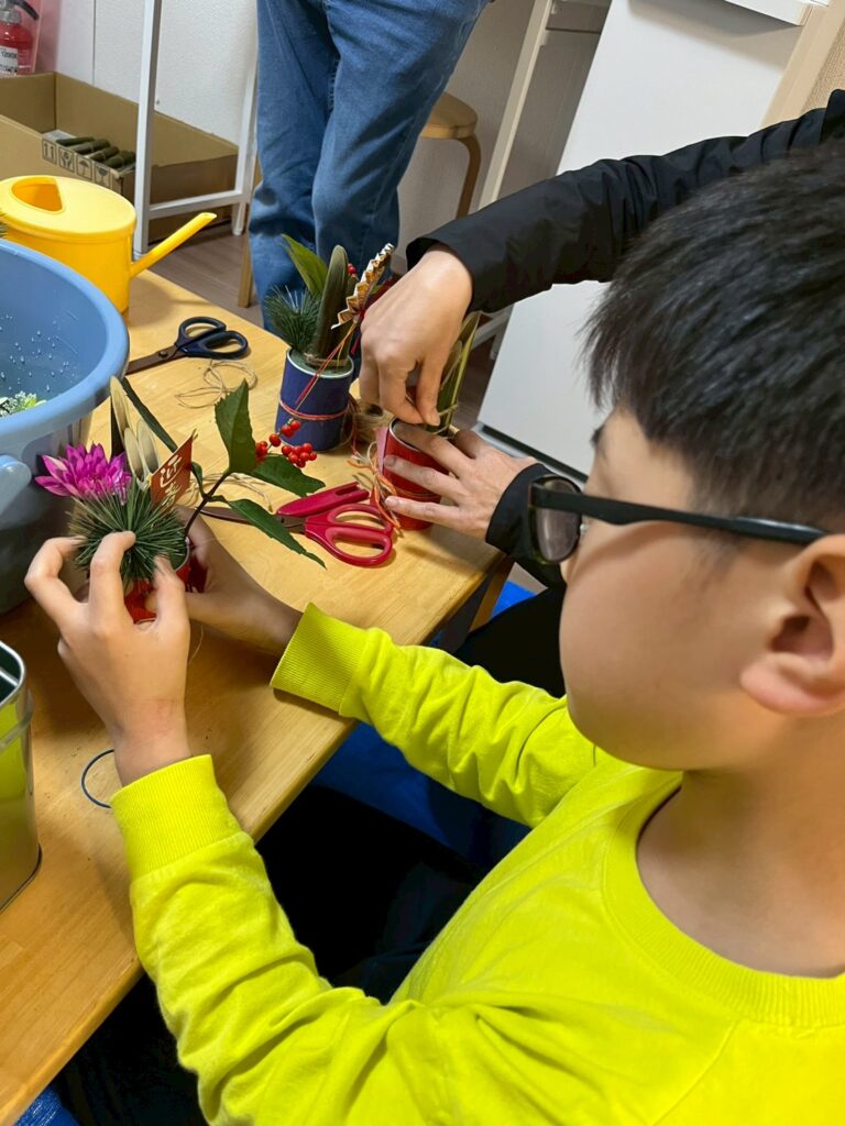 もうすぐ2026年を迎えるため、門松をこどもたちと作りました。